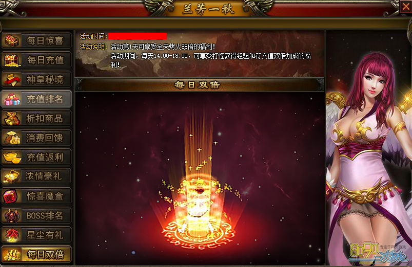 【活动内容】:活动期间,每天14:00 – 18:00,可享受打怪获得经验和符文值双倍加成的福利!活动第1天,更可享受全天烤火双倍!