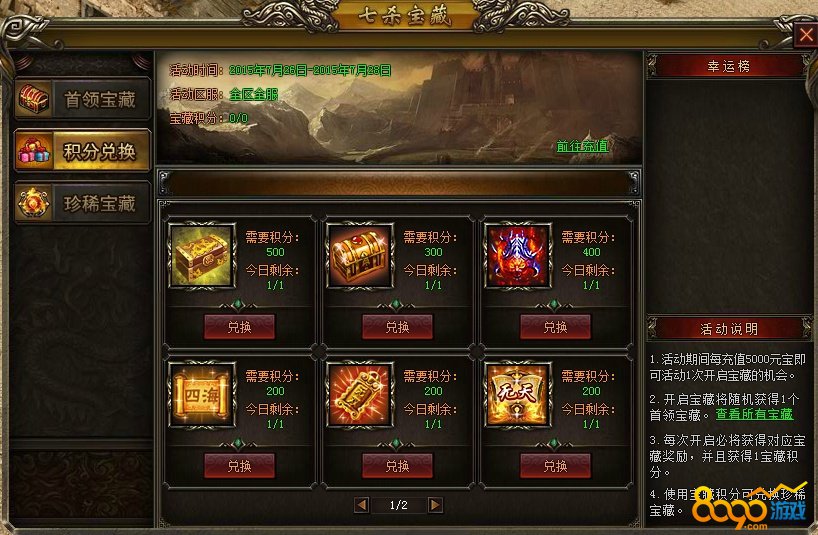 1. 活动期间每充值5000元宝即可活动1次开启宝藏的机会。