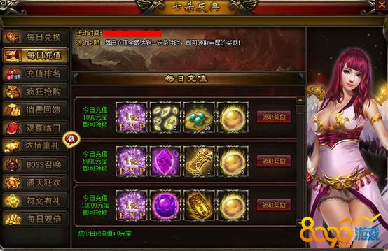 【活动说明】:每日充值金额达到一定条件时,可领取一份奖励。