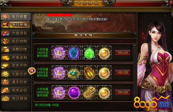 【活动说明】:每日充值金额达到一定条件时,可领取一份奖励。