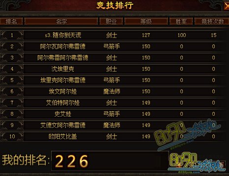 英雄降临的游戏玩家参加竞技场的玩家一定很想知道自己的排名。玩家可以在竞技场界面查询自己的排行,排行榜只显示第一名到第一百名,一百名以后就不显示了。8090英雄降临是一款无需下载,直接登陆网页就能畅玩的国产角色扮演游戏。画面采用3D渲染2D表现的方式带给玩家精致细腻的游戏视觉感受!富有张力的战斗系统,极具带入感的世界观!