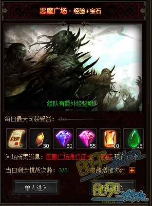 游戏中有丰富多彩的活动,像征服魔王活动、血色城堡活动以及恶魔广场活动就是可以获得大量金钱奖励的!征服魔王其实就是击杀世界boss,世界boss被击杀后一小时将再次刷新,击杀可获得丰厚的奖励!