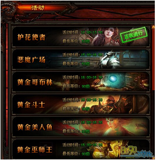 活动任务又分为:护花使者、恶魔广场、黄金哥布林、黄金斗士、黄金美人鱼、黄金巫师王这六种。