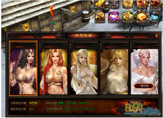 玩家通过与恩雅对话可以接受护送任务,护送前可通过刷新美女来提升任务奖励。