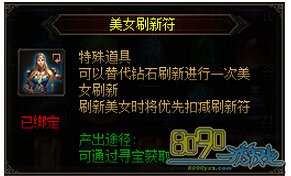 刷新美女可通过道具美女刷新符实现,也可使用宝石刷新。