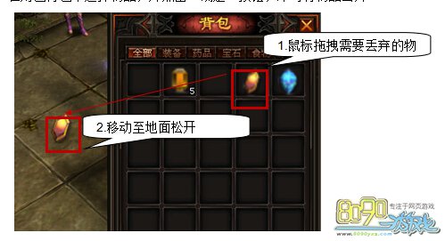 在角色背包中选择物品,并点击“确定”按钮,即可将物品丢弃。