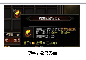 学习技能:打开背包,通过双击使用背包内已有的技能之石,可学会对应的技能。