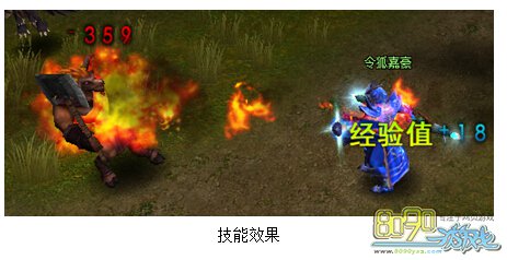 技能结果:对目标发动技能后,会播放技能特效,并对目标照成技能携带的伤害。