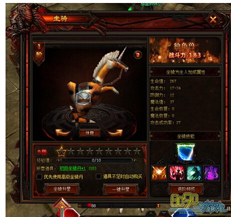 坐骑养成是奇迹主要养成线路之一,玩家完成主线任务《勇者坐骑》后开启坐骑功能