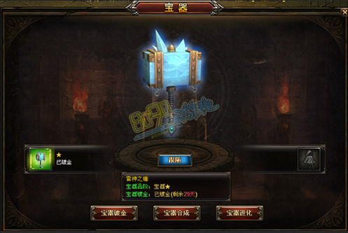 宝器合成界面在游戏右上角,点击打开即可,小编先为大家介绍一下雷神之锤: