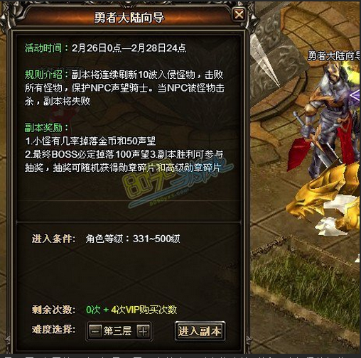 3.副本胜利可参与抽奖,抽奖可随机获得勋章碎片和高级勋章碎片。