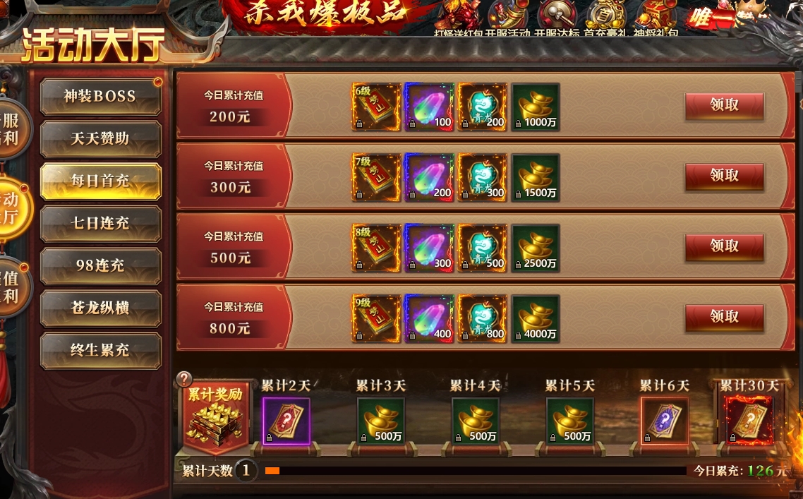 1、开服福利