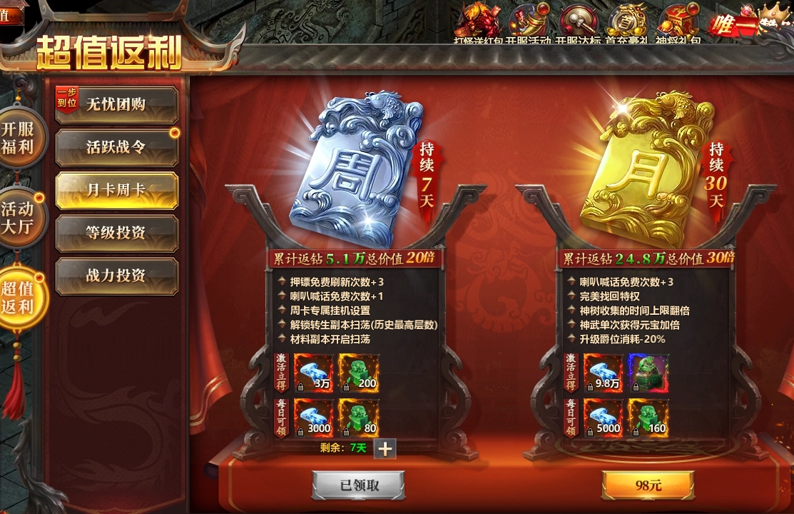 月卡周卡