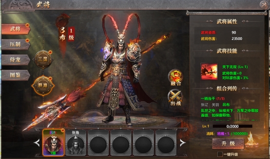 2、武将升级:获得武将后,升级武将提升其属性,可以增强其战斗表现。