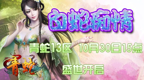 8090游戏《青蛇》青蛇13区“白蛇痴情”将于10月30日15点火爆开启咯!在这激动人心的时刻,众多开区好礼等你来拿!还有很多让你心动不已的活动等你来参加哦!机不可失失不再来,千万别错过哦!