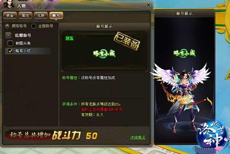 而且称号在倾世洛神中还有属性加成哦,不同的时候带不同的称号能增加玩家的游戏舒畅度。