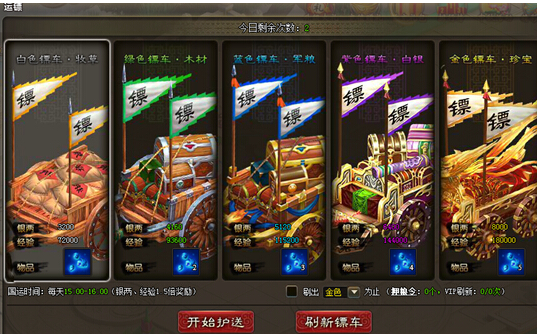 在玩家31级的时候能开启押镖系统,而押镖获得经验和金钱的必做活动。每日的押镖只有三次,无法使用元宝增加次数,但能使用元宝增加每次的收益。