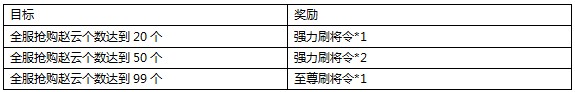 活动内容:活动期间,全服抢购赵云到达一定数量,所有玩家均可领取奖励。