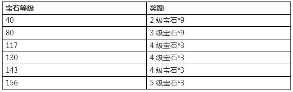 活动内容:活动时间内镶嵌宝石到达一定等级(所有镶嵌宝石等级之和)的玩家可以获得丰厚奖励。