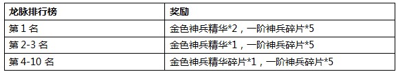 活动内容:以开服第4天23:00的龙脉排行榜为准,龙脉排名前十的玩家都可获得丰厚奖励。