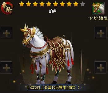 的卢马是新手村就能获取的基础马,但是虽然获取简单属性却不低。培养坐骑需要消耗灵兽丹或者是元宝。培育成长值还有几率出现暴击培养,最高可达10倍暴击。升级十星之后就有质的突破。很适合不想再商城中购买高级坐骑的小伙伴使用的。