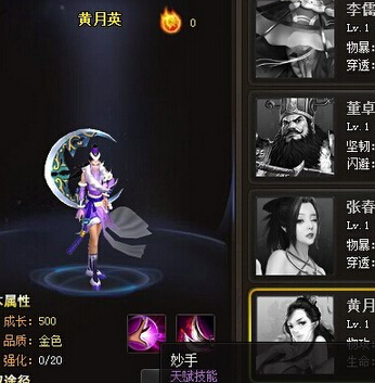 黄月英的初始成长值为500,品质为金色,并且可以强化20个等级。收藏武将可以获得1000的生命和50的攻击。