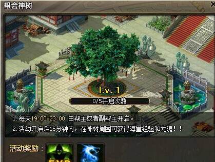在帮会神树活动期间,在帮会领地就可获得海量活动经验和贡献奖励,角色等级越高,帮会神树活动时间内获得的经验越多,结束后还会散落大量的金币哦。