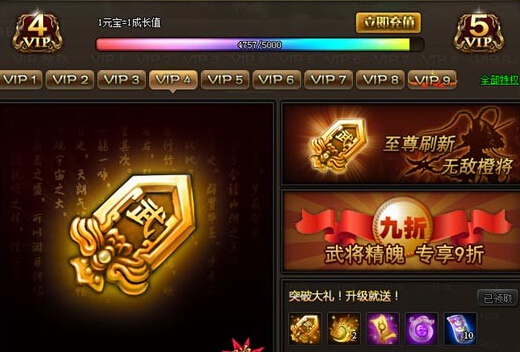 玩家充值100元宝即可成为VIP,每充值1元即可获得1点成长值,vip是没有时限的,但是充值后的元宝使用完了就像没有VIP一样了,所以又得充值了哦。
