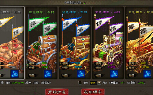 如果全程3倍的跑完镖车,还会有而外2500的经验和250银两的奖励,15点-16点是押镖时间,可以获得双倍的收益。