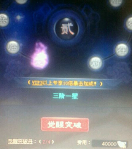 觉醒突破丹够了才可以突破,那个只是显示现在只有2个,要4个才能到下一阶。藏宝图里面可能爆觉醒丹,竞技场礼包里面也有觉醒丹,不过也是概率非常小就是了,一般挖宝,也是有几率获得的哦。