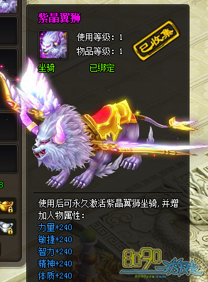 活动内容:全服将开启坐骑-紫晶翼狮的团购活动,历史最低价,超值团购,不要再犹豫。