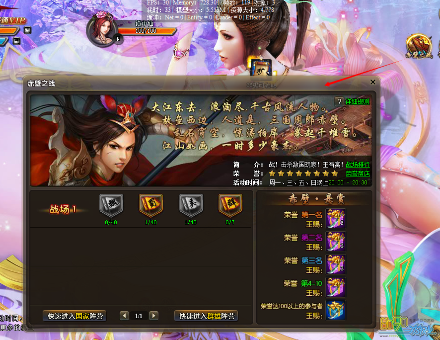 2、玩家等级≥30级,在界面右上角点击图标进入。