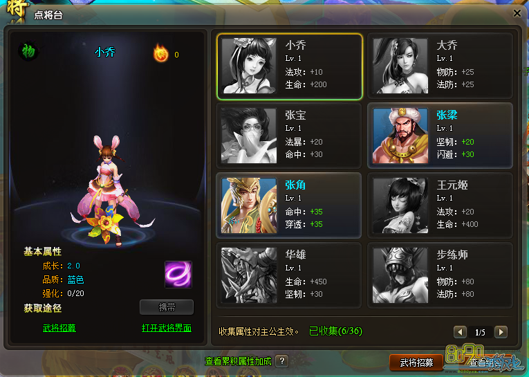 1. 点击右上角【招募武将】,或打开【点将台】-【武将招募】,将弹出武将招募界面。