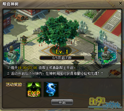每天19:00-23:00由帮主或者副帮主开启活动。