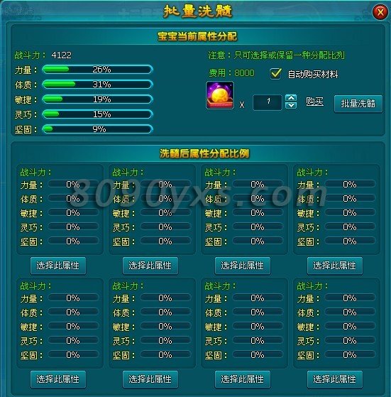 洗涤后属性分配比例的战斗力主要是从力量,体质,敏捷,灵巧,坚固等。
