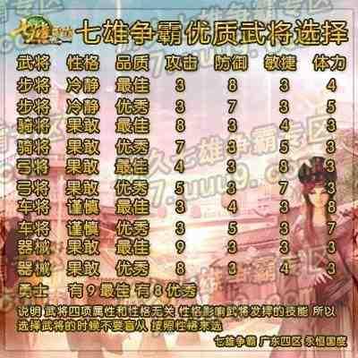 七雄争霸武将选择攻略基本可以参考此七雄争霸武将选择图。