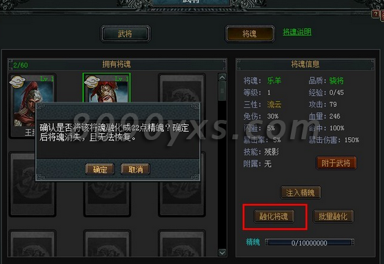 大家除了将魂的获得和附身外,平时不用的将魂也可以选择“融化将魂”,将融化后获得的精魄值注入自己钟爱的将魂身上。