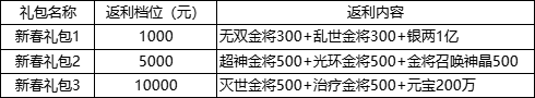 活动期间,玩家累计充值达标对应档次,即可申请,一个档位的礼包只能申请一次,活动期间充值5000,可以领取1000档和5000档的礼包。