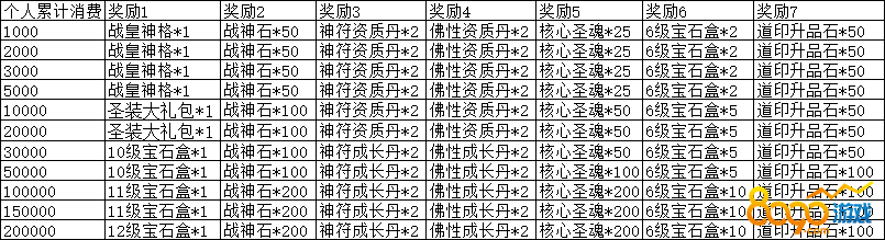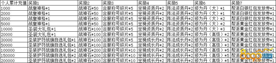 【注:该活动分3段,分别为累计充值(第1-2天),累计消费(第3-4天),累计充值(5-7天)】