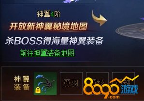 当神翼达到4阶后,可前往神翼4阶秘境,挑战神翼BOSS获取神翼装备