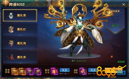 boss击杀的服务器,会增加20个福利礼包,每天只能领取每个boss一个福利礼包,个数在每天的23:59:59清空。 BOSS被击杀后,所有玩家还可领取全民礼包。这些礼包可以开出大量神翼升阶丹、装备、圣装碎片等奖励。