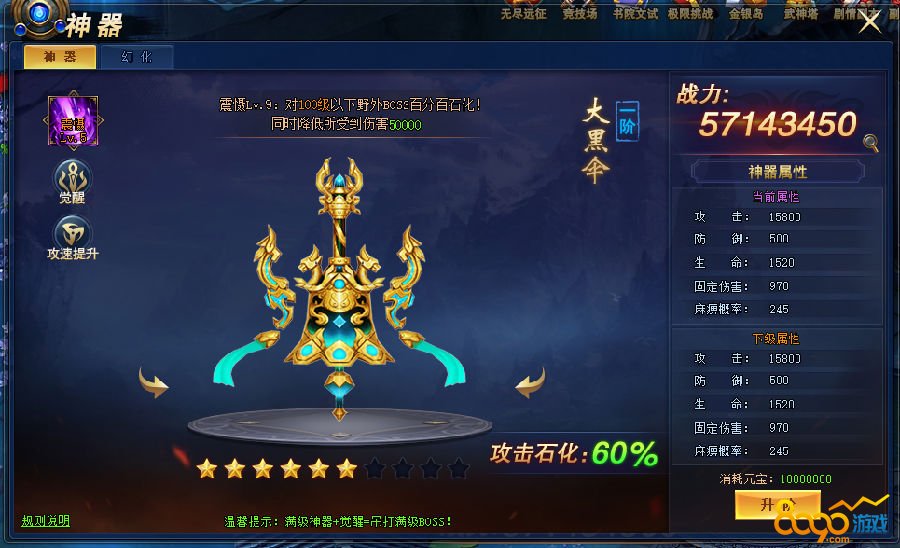 神器对我们的作用也很大,神器可协助攻击玩家所选目标;神器攻击对目标造成巨额固定伤害;神器攻击有将目标BOSS石化(石化后BOSS将无法移动、攻击)。