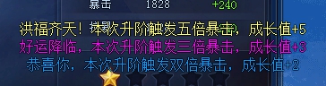 进阶时,有概率触发“好运降临”与“洪福齐天”,获得更多的成长值:
