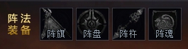 阵法装备分:阵旗、阵盘、阵杵、阵魂四个部位