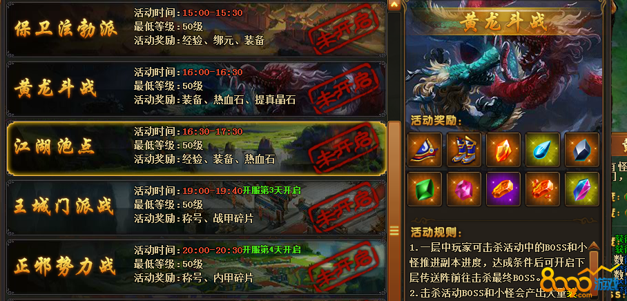 16点—16点半黄龙斗战 可获得装备,热血石,提真晶石