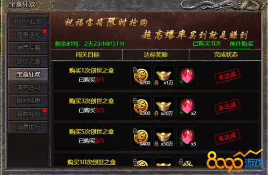 1.活动期间,购买创世宝盒达到一定次数可领取奖励;