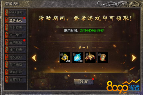 1.活动期间,玩家每天登录游戏,可以在活动界面中领取一份奖励;