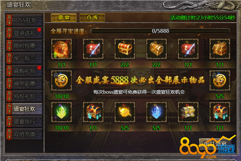 2. 达到全服盛宴进度,将必会获得一份展示物品哦!