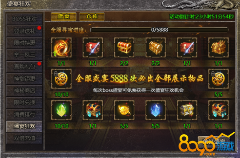 2. 达到全服盛宴进度,将必会获得一份展示物品哦!