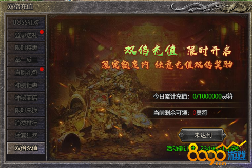 1.活动期间,限定额度,任意充值可得双倍灵符奖励;